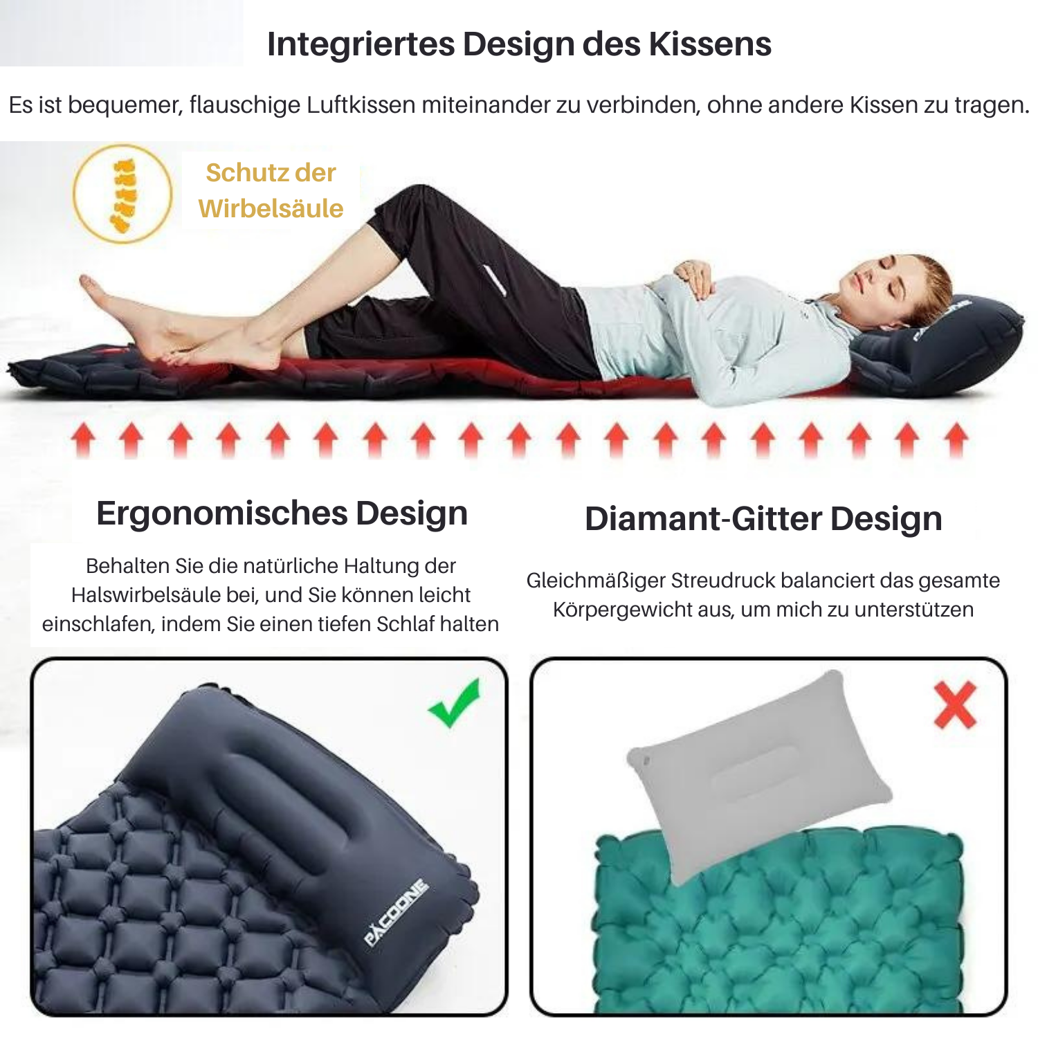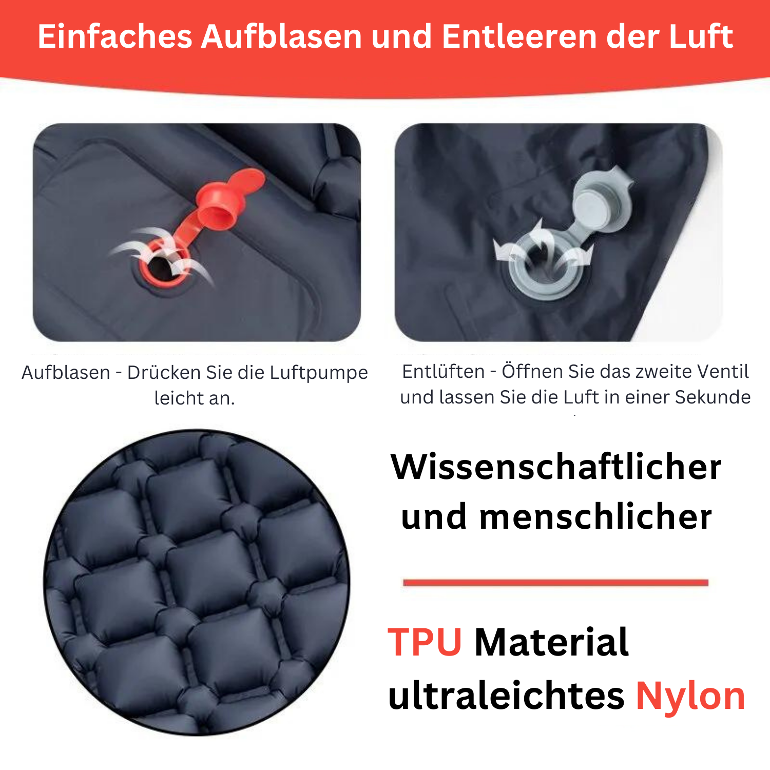 Aufgrund der heutigen Aufblasbare Matratze, dass sich auf einer hochwertigen Luftmatratze keine Druckpunkte am Körper bilden. Die Muskeln können entspannen und der Rücken fühlt sich wohl.